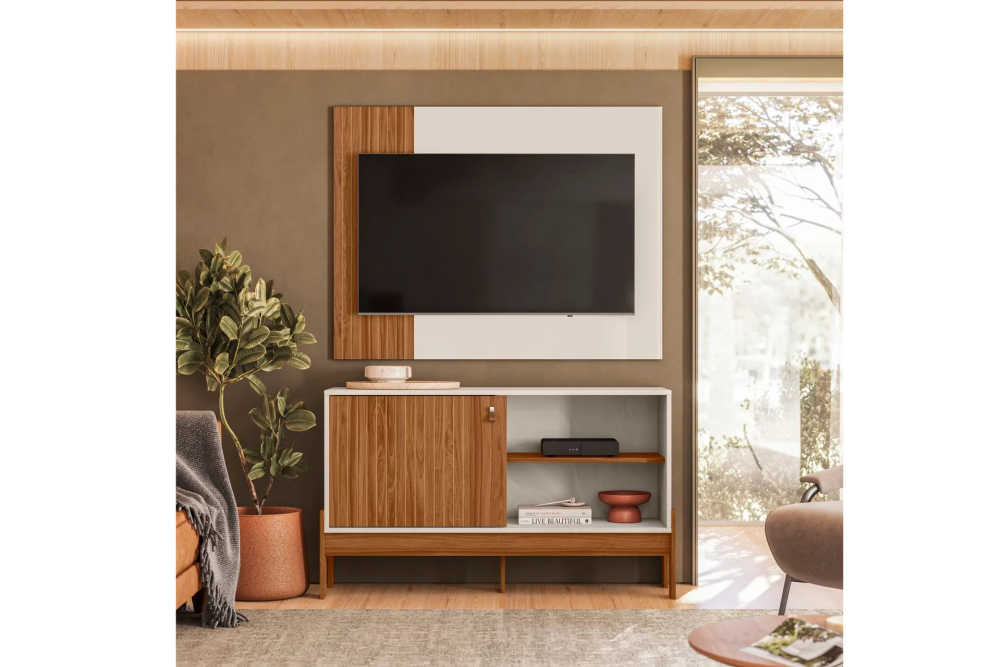 Rack C/Painel Wood 1.2 Cinamomo Mel/Off White - Mobler