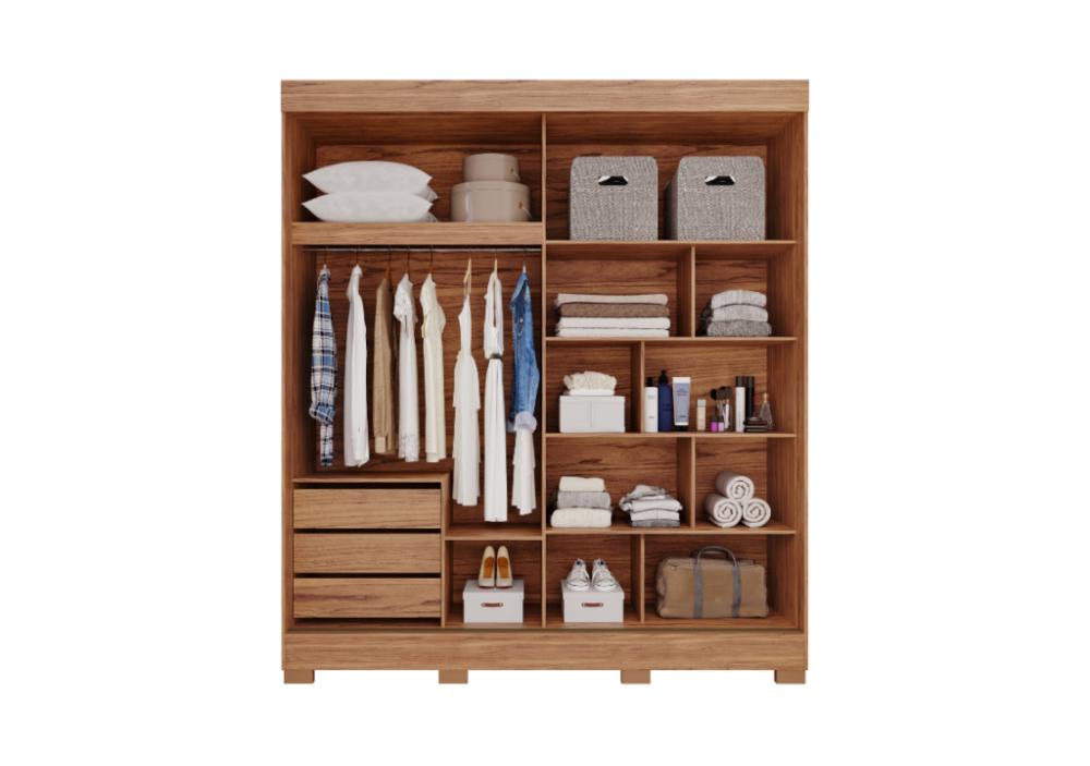 Se você gosta de funcionalidade e espaço, esse roupeiro da Panan Móveis é a escolha ideal. Com dimensão compacta, ele ocupa pouco espaço no quarto, porém tem espaço interno de sobra para organizar seu guarda-roupas.