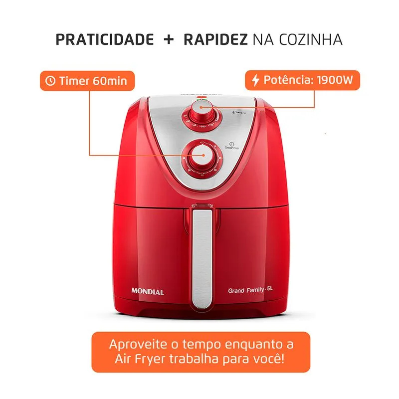 Fritadeira Sem Óleo Air Fryer 5L AFN50RI Vermelha - Mondial