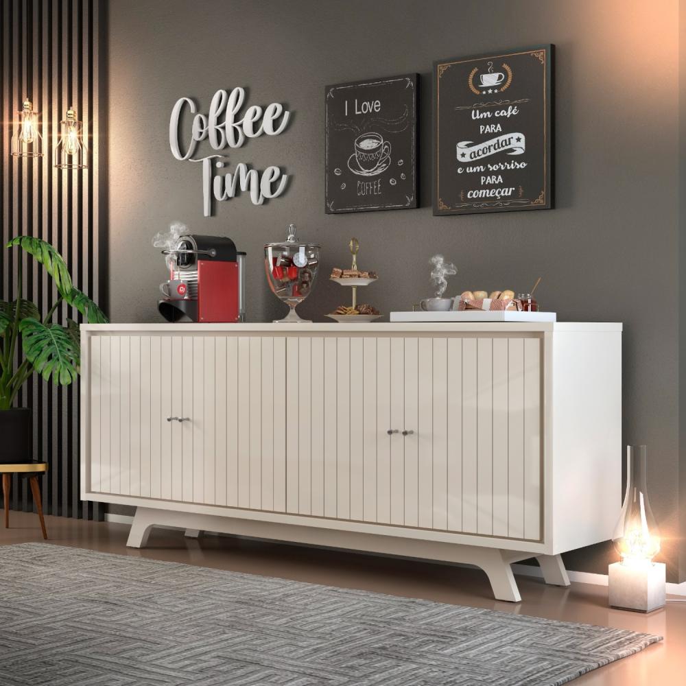 Uma ótima solução para sua casa, o Buffet BRISE é o complemento ideal para compor a sua sala de jantar. Possui um design moderno e sofisticado, com uma caixaria externa de 25mm, que também proporciona muito mais resistência. Com quatro portas frisadas e duas prateleiras internas você terá espaço para guardar seus objetos e utilidades domésticas organizadamente, é um móvel prático e funcional.