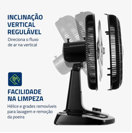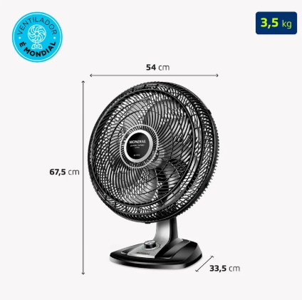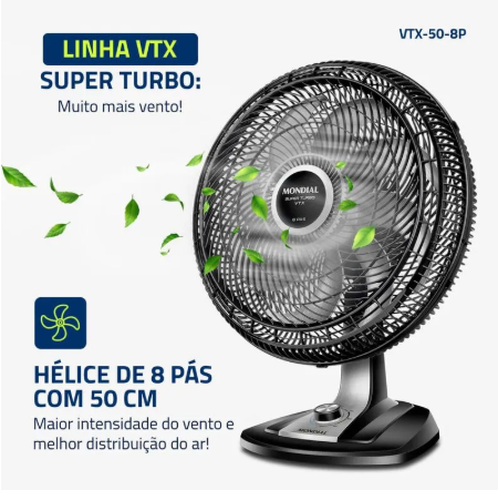 O ventilador de mesa Super Turbo VTX-50-8P possui 50 cm de diâmetro e hélice de 8 pás, o que promove uma circulação de ar mais eficiente e garante mais frescor ao ambiente.